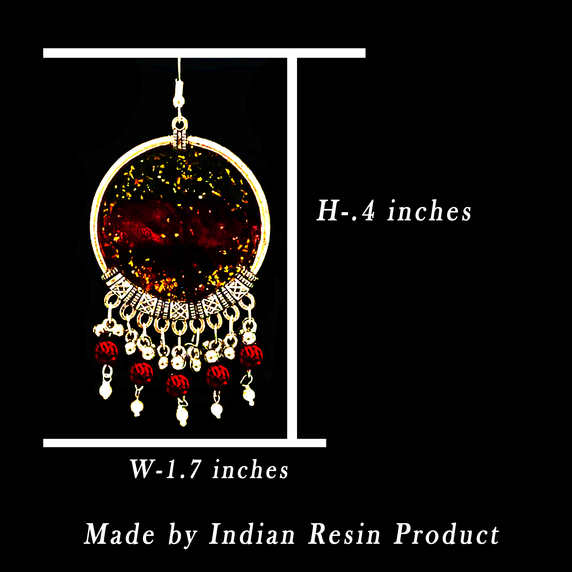 These round resin earrings pair beautifully with sarees, kurtis, or even western dresses, giving you the versatility to style them your way. Whether you are attending a wedding, a party, or just a casual outing, these earrings will add a distinctive sparkle to your look. Handmade with love and care, this jewelry piece symbolizes the perfect union of art and tradition. Add these stunning resin earrings to your collection and experience the charm of authentic handmade craftsmanship with a modern touch.