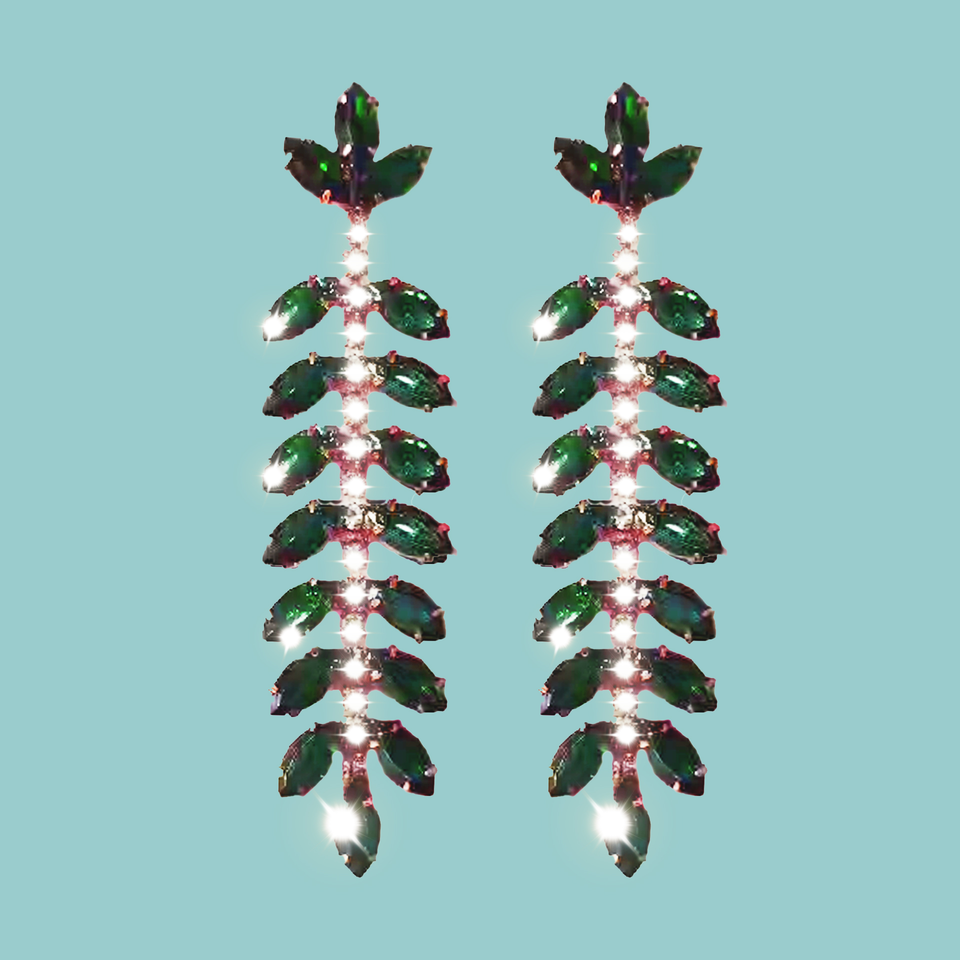 Beautiful handmade resin earrings featuring sparkling green stones and crystal detailing. Lightweight, stylish, and perfect for festive occasions, parties, and weddings.